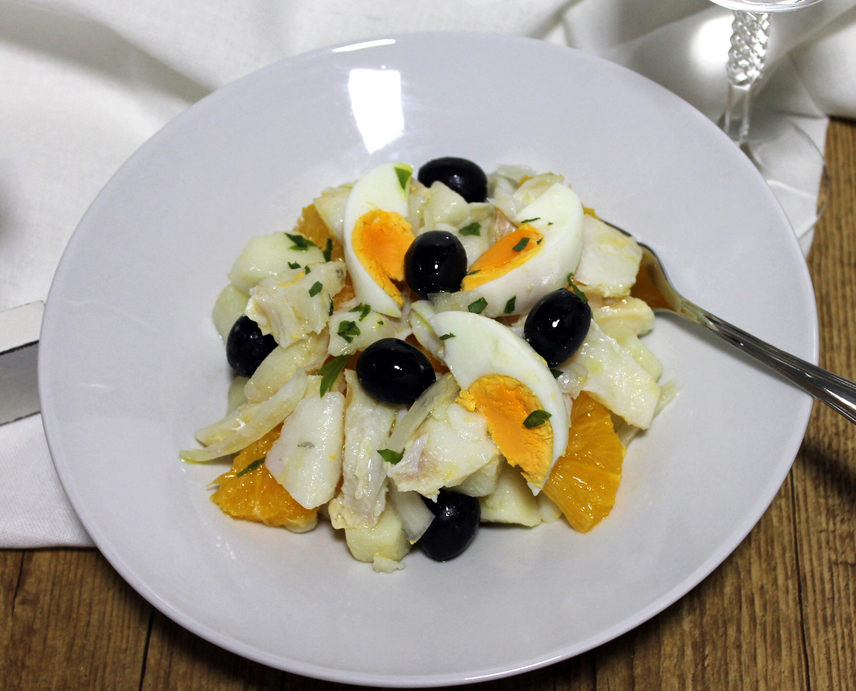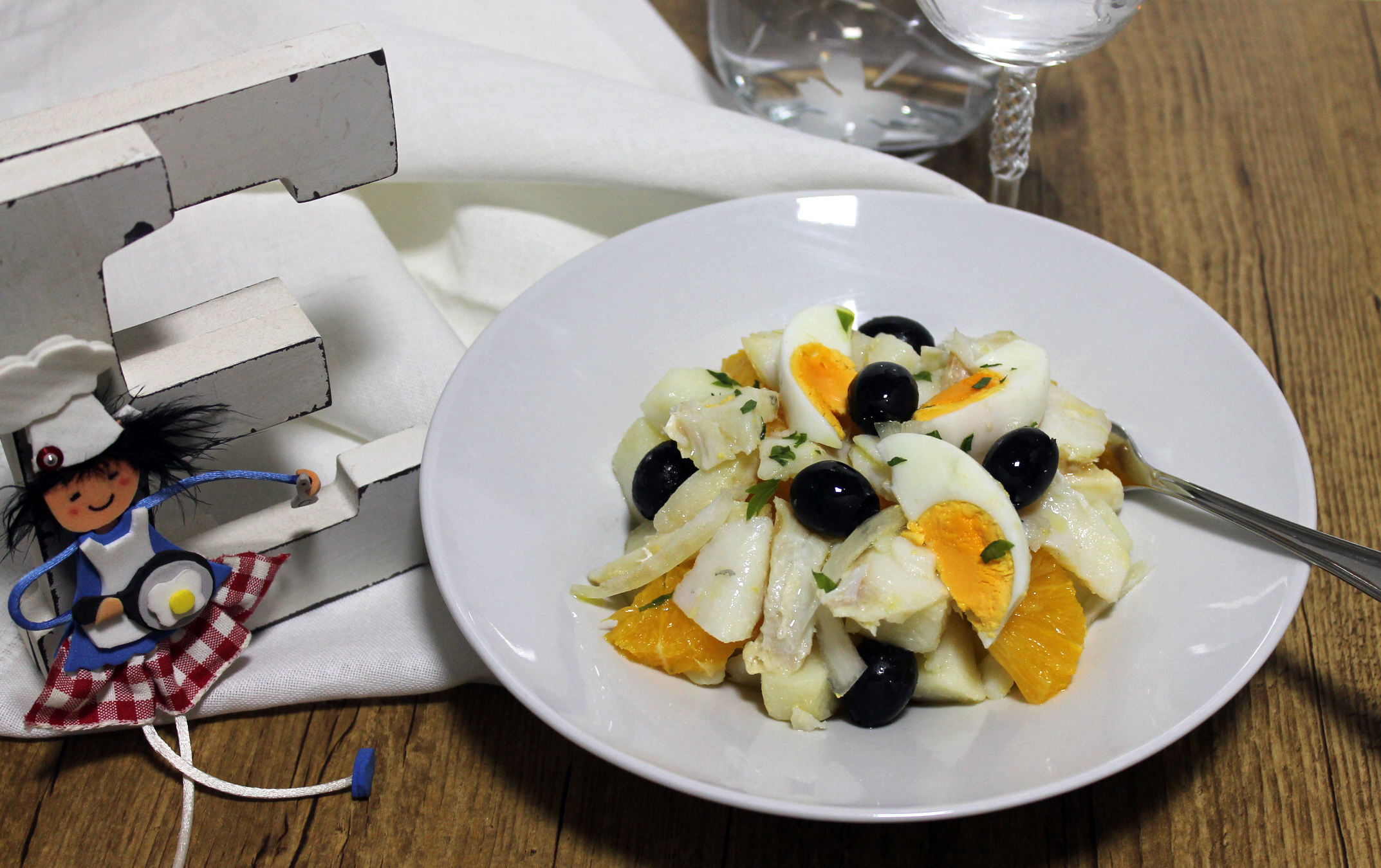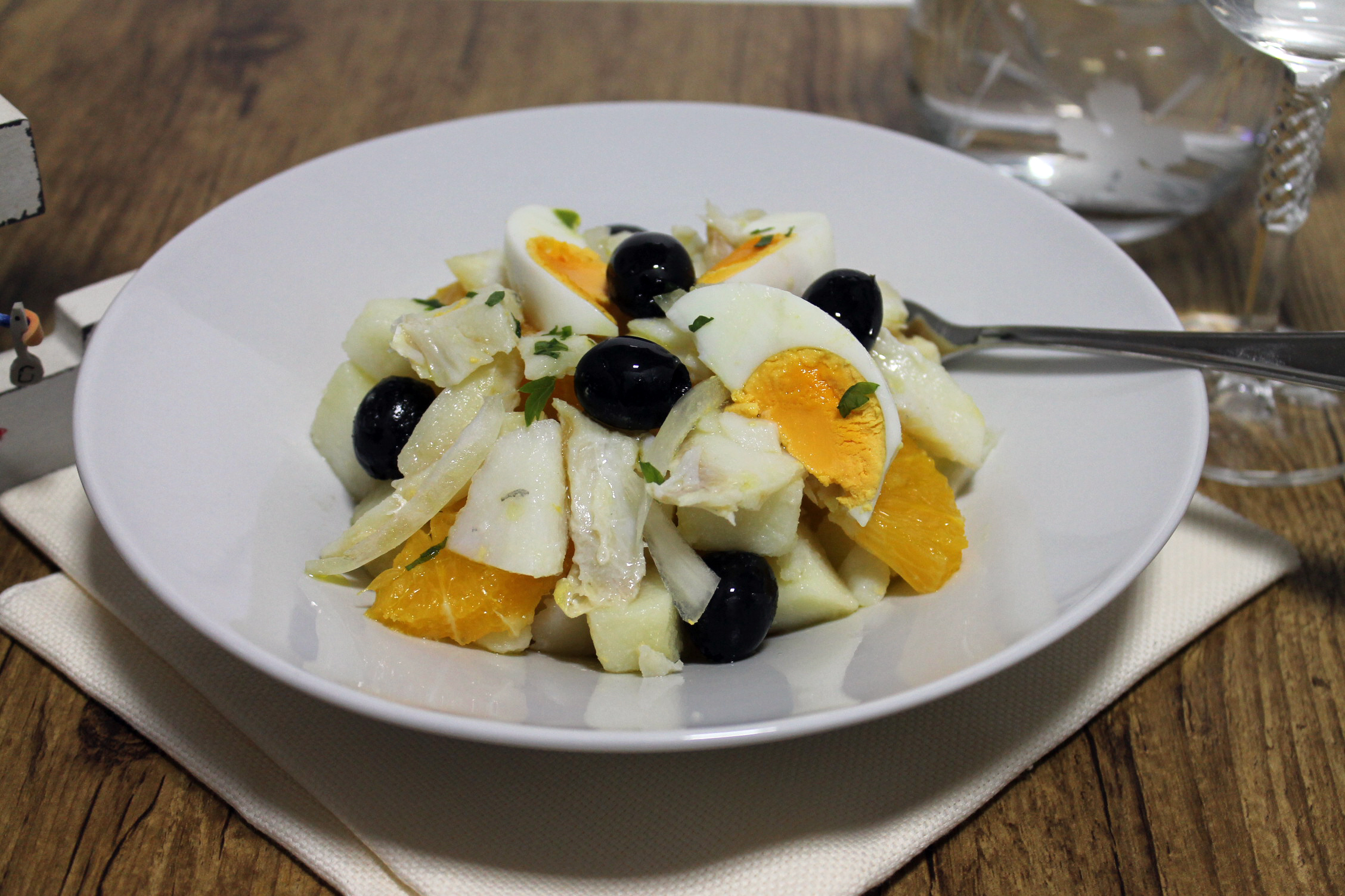 Una ensalada con bacalao patatas y naranja. ¡¡¡riquísima!!!. Quizá te extrañe lo de la naranja, pero le queda fenomenal.