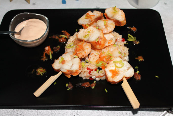 Si necesitas inspiración para tu menú de Fin de Año o de Año Nuevo te propongo esta brocheta de rape alangostado, la mezcla de dos clásicos ya un poco pasados de moda, pero que merece la pena — quizá porque con la unión de las dos recetas el plato sale ganando—