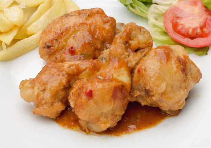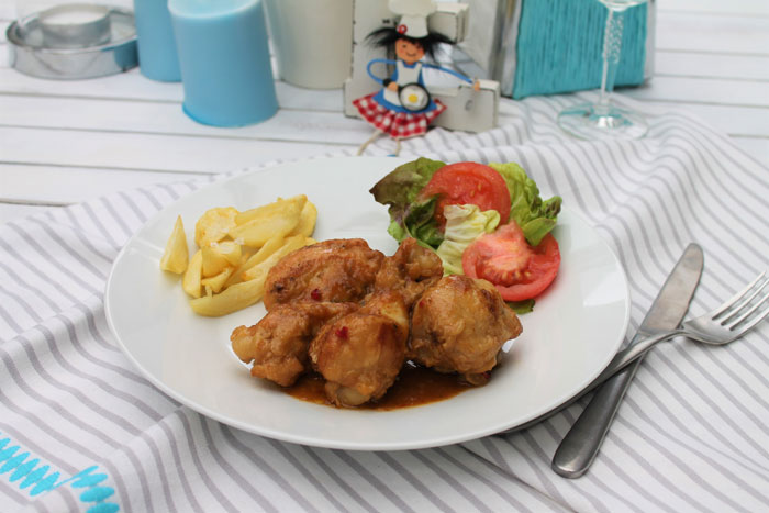 – Mientras prepara una guarnición para acompañar a este sabroso pollo, unas patatas fritas o una ensalada le quedarán perfectas, sin complicarte demasiado.