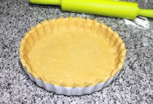 1- Una buena base de masa quebrada (o brisa) que deberás hornear “en blanco”, es decir, antes de ponerle el relleno. Con esto se consigue una base crujiente y que pueda soportar el peso del relleno sin que se rompa cuando la sirvas. Aunque yo creo que es preferible utilizar masas caseras — ya sabes que en general «todo lo hecho en casa sabe mejor y es de más confianza»—, puedes recurrir a las masas preparadas,en versión refrigerada o congelada, el resultado no es lo mismo, pero que tire la primera piedra quien no lo haya hecho alguna vez.