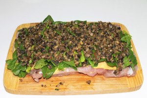 – Por último, esparce el sofrito con champiñones sobre las espinacas.