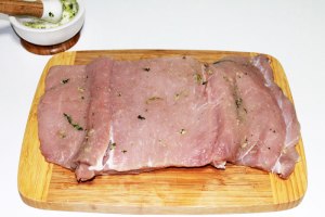 Haz un majado con el ajo, perejil,pimienta, sal y adoba el lomo abierto.