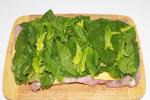 – Las espinacas lavadas y crudas distribúyelas sobre las tortillas.