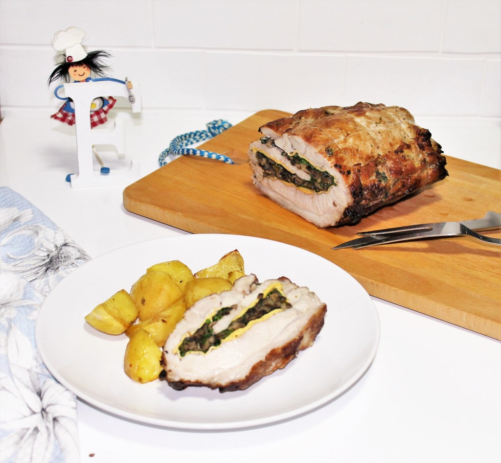 – Es bueno que transcurrida la hora o un poco menos de cocinado compruebes el punto del asado, porque aunque la carne de cerdo no debe quedar cruda, si se cocina en exceso se reseca demasiado. Puedes pinchar el rollo y si sale un liquido rosado es que aun necesita un poco más de tiempo en el horno.