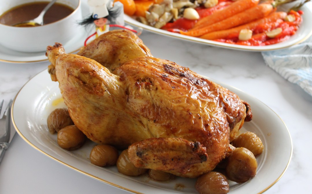 Necesitas: 1 pollo (sin trocear) de 1 kilo y medio, más o menos1 limónAceite de olivaSal y pimienta Para la guarnición — optativo—: Castañas 200 g castañas1 vaso de leche1 ramita de hinojo (el "fiuncho" de toda la vida, en mi tierra ) Hortalizas — puedes sustituirlas por las que más te gusten o tengas … Sigue leyendo Pollo asado al horno, receta fácil e infalible